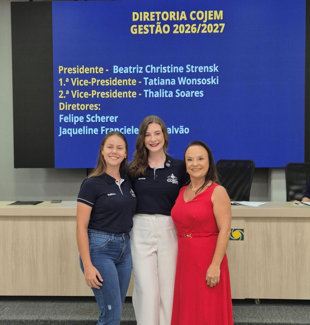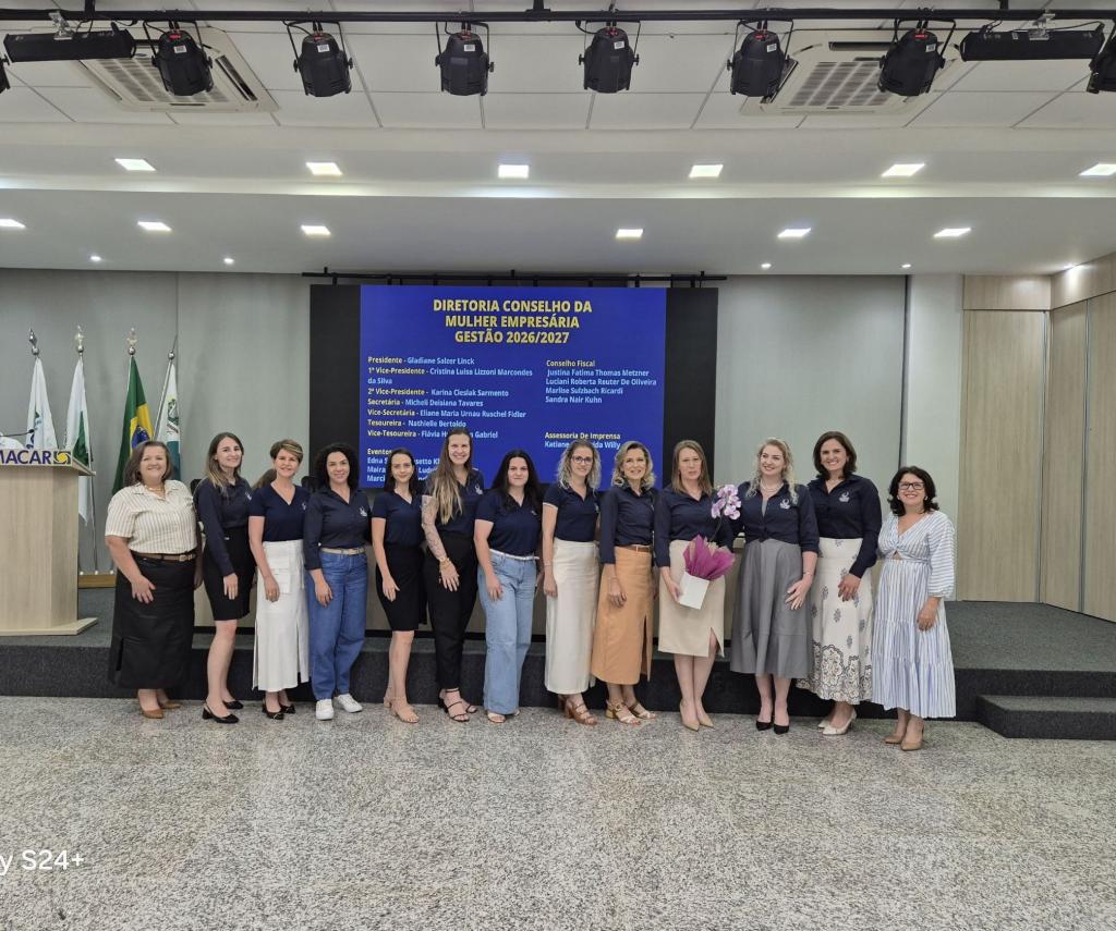 Também foram empossadas as novas presidentes dos conselhos da Acimacar para a gestão 2026/2027. Para o Conselho da Mulher Empresária (CME), foi eleita a empresária Gladiane Salzer Linck; e, para o Conselho do Jovem Empreendedor (Cojem), Beatriz Christine Strensk.