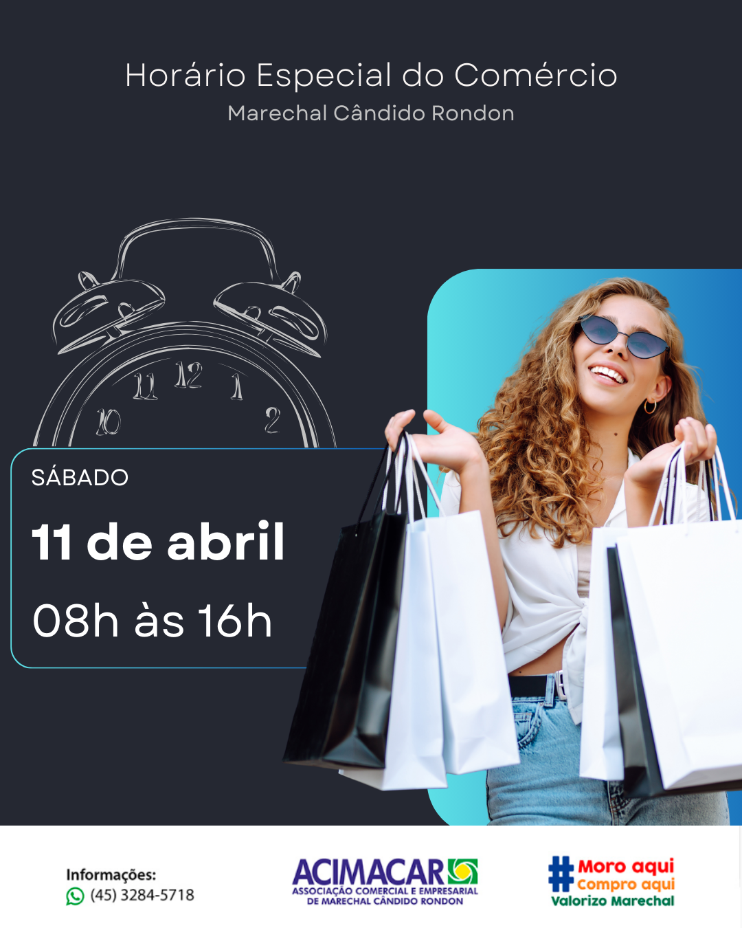 Você está em: Página Inicial > ACIMACAR > Agenda > Horário Especial de Abril 2026 - 11/04 (2º sábado do mês)