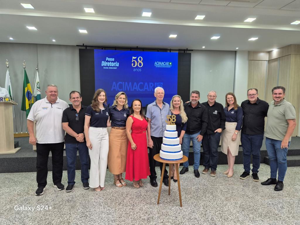 Também foram empossadas as novas presidentes dos conselhos da Acimacar para a gestão 2026/2027. Para o Conselho da Mulher Empresária (CME), foi eleita a empresária Gladiane Salzer Linck; e, para o Conselho do Jovem Empreendedor (Cojem), Beatriz Christine Strensk.
